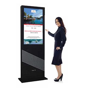 55 –  palčni LCD zaslon /139 cm, Full HD resolucije 1080 × 1920, »touch screen«. Možna vertikalna postavitev zaslona.  Možna enostranska in dvostranska postavitev. Jekleno stabilno ohišju. Mere v cm: 216 × 69 × 6 (v × š × g). Sprednja stran zaščitena s 4 mm kaljenim steklom.